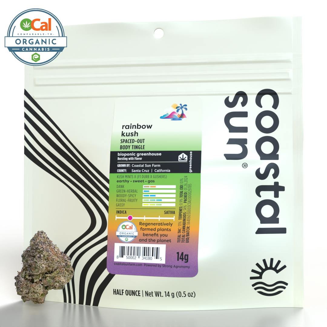 Rainbow Kush is an award-winning genetic cross of Kush Mints, F1 Durb, and Gushers. This savory blend boasts hints of funky cheese and creamy diesel, balanced with a light maple finish. Known for its potency, it may induce a spaced-out mental state and a tingling bodily sensation, ideal for a serene lazy night in.