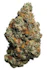 Appearance: The flower features dense, compact buds with deep green and purple hues, woven with bright orange hairs and a heavy coating of frosty white trichomes.
